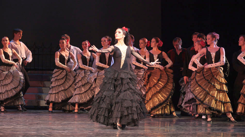 - Балет «Болеро» на музику Моріса Равеля в постановці видатного хореографа Анатолія Шекери, відомий виразними партіями «Дівчини в білому» та «Дами в чорному», прикрашає сцену театру уже понад 50 років. Цього разу в виконавському складі: Ольга Голиця (Дівчина в білому), Райса Бетанкоурт (Дама в чорному) та Євген Логвиненко (Юнак). Диригент – Віктор Олійник.