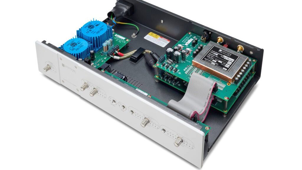Сигнальный тракт состоит из нескольких каскадов. На входе расположен первый усилительный каскад с переключаемыми значениями 0, +10 и +20 дБ. Далее следует коррекция по стандарту RIAA equalization, реализованная по гибридной схеме: активная на низких частотах и пассивная на высоких. После этого применяется второй каскад усиления с уровнями 0, +2, +4, +6 и +8 дБ.